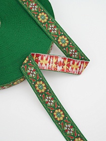 Жак.лента 24мм Желтый/красный цветочный орнамент на зеленом, рис.8752/9