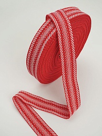 10854 товаровЛента тканая для поясов, 30мм Белая строчка на красном