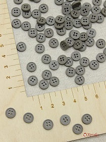 Пуговица пластмасса, цв.графит, 8мм, 4 отверстия