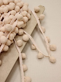 Тесьма "Помпоны" цв.св.телесный с персиковым оттенком, шир.тесьмы без помпона-10мм; помпон Ø-20мм