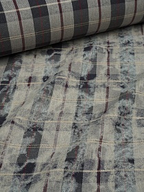 Фуле с вареным эффектом "Клетка" цв.серый/бежевый, ш.1.4м, хлопок-100%, 150гр/м.кв