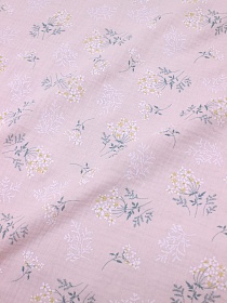 Муслин двухслойный с эф.жатости "Веточки ромашки" цв.розовая пудра-2, ш.1.37м, хл-100%, 120гр/м.кв