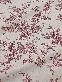 Полулен "Райские птицы" цв.вишневый (на суровом), ш.2.2м, лен-30%, хлопок-70%, 150гр/м.кв