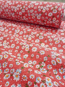 Бязь "Ромашки на красном", ш.1.5м, хлопок-100%, 120гр/м.кв