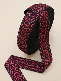 10313 товаровЛента тканая для поясов, 48мм Светло-малиновый орнамент на черном