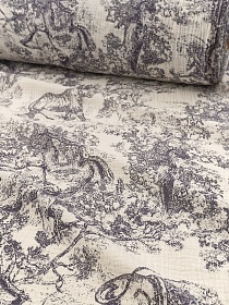 Муслин двухслойный с эф.жатости "Туаль де Жуи-Дикий мир" цв.чернильный, ш.1.4м, хл-100%, 120гр/м.кв