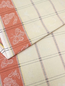 Холст полотенечный жаккард "Бабочки по кайме" цв.терракотовый, ш.0.5м, лен-30%, хл-70%