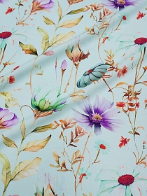 Плательная вискоза Digital "Цветочная палитра" цв.светло-бирюзовый, ш.1.4м, вискоза-100%