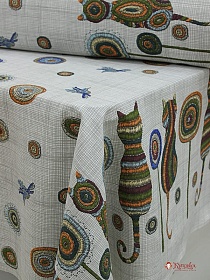 11000 товаровРогожка "Этно-Кошки с одуванчиками по кайме", ш.1.5м, хлопок-100%, 165гр/м.кв