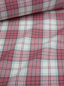 Вареный (стираный) хлопок "Розовая клетка (2*2см) на сером с зеленым оттенком", ш.2.5м