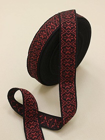 Лента тканая для поясов, 38мм Красный орнамент на черном, рис.9843