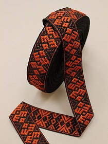 10489 товаровЛента тканая для поясов, 40мм Оранжевый орнамент на черном