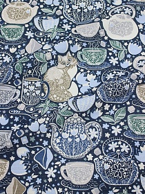 10971 товаровРогожка "Милое чаепитие" цв.темно-синий, ш.1.5м, хлопок-100%, 165гр/м.кв