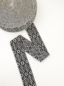 11040 товаровЛента тканая для поясов, 50мм Суровый орнамент на черном