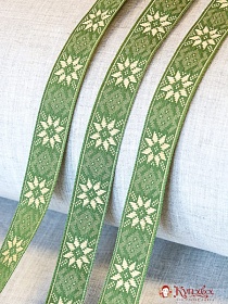 10854 товаровЖак.лента 24мм Золотистый цветок на зеленом хаки