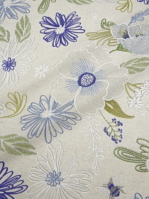 Полулен "Цветочный луг" цв.т.малиновый, ш.1.5м, лен-30%, хлопок-70%, 140гр/м.кв