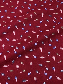 Теплый хлопок "Листочки на бордовом", ш.1.47м, хлопок-100%, 150гр/м.кв