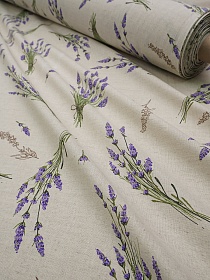 Полулен "Любовь к провансу - букетик" (на суровом), (комп), ш.1.5м, лен-30%, хлопок-70%, 140гр/м.кв