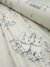 Бязь "Кролики с клевером" цв.св.бежево-серый, ш.1.5м, хлопок-100%, 135гр/м.кв