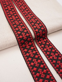 Лента тканая для поясов, 40мм Красный орнамент на черном, рис.9532