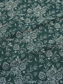Теплый хлопок "Букеты пионов на темно-можжевеловом", ш.1.5м, хлопок-100%, 160гр/м.кв