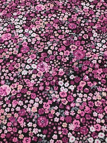 10802 товаровФланель "Мелони (розовые/т.лиловые цветы на черном)", ш.1.5м, хлопок-92%, вискоза-8%, 180гр/м.кв