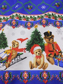 10132 товаровРогожка "Новогоднее приключение" цв.т.василек, ш.1.5м, хлопок-100%, 160гр/м.кв