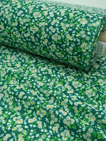 Перкаль "Ромашка луговая" цв.изумрудный, ш.1.5м, хлопок-100%, 105гр/м.кв