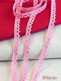 Кружево цв.розовый, 10мм, хлопок-90%, п/э-10%