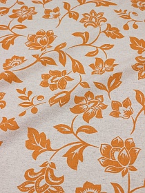 Полулен "Оранжевые цветы" (на т.суровом), ш.1.5м, лен-30%, хлопок-70%, 147гр/м.кв