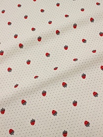 10857 товаровПлательный хлопок с вискозой микроворс"Клубнички" цв.красный, СОРТ2, ш.1.4м, хл-50%, вискоза-50%