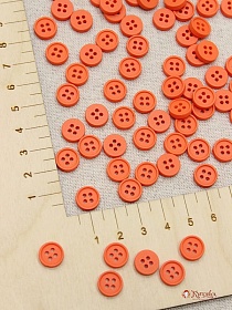 Пуговица пластмасса, цв.кораллово-оранжевый, 10мм, 4 отверстия