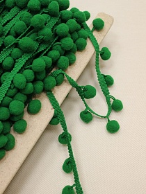 Тесьма "Помпоны" цв.бархатный зеленый, шир.тесьмы без помпона-8мм; помпон Ø-15мм, п/э-100%