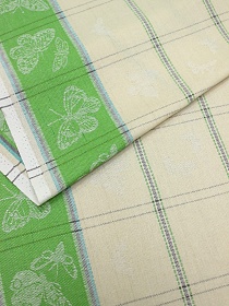 Холст полотенечный жаккард "Бабочки по кайме" цв.майский зеленый, ш.0.5м, лен-30%, хл-70%