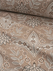 Рогожка "Цветы по кайме" цв.карамельное какао, ш.1.5м, хлопок-100%, 160гр/м.кв