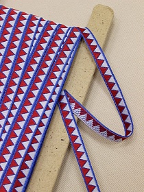 Жак.лента 10мм Белые/красные треугольники на васильковом