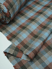 Шерсть пальтово-костюмная Твид "Клетка" цв.голубой/бежевый, ш.1.5м, шерсть-50%, п/э-50%, 340гр/м.кв