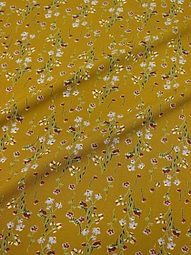 Штапель Премиум "Цветочный ветерок" цв.т.горчично-оливковый, ш.1.45м, вискоза-100%, 120гр/м.кв