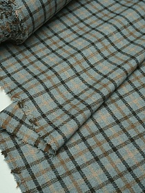 Вареный (стираный) хлопок "Клетка (3.0*3.0см)" цв.голубой джинс/нуга, ш.2.5м, хл-100%, 115гр/м.кв