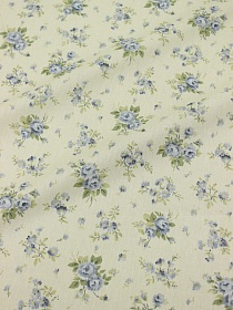 10301 товаровИмпорт. хлопок "Голубые букетики роз" цв.голубой/бежево-оливковый, СОРТ2, ш.1.45м, хлопок-100%