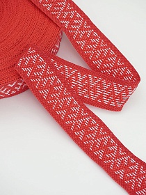 Жак.лента 30мм Белый славянский орнамент на красном, рис.9862/1
