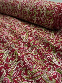 Импорт. хлопок "Восточные огурчики на бордовом", ш.1.45м, хлопок-100%, 100гр/м.кв