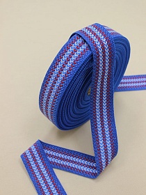 10861 товаровЛента тканая для поясов, 40мм Красно-белый орнамент на васильковом