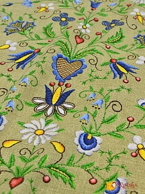 10844 товаровДорожка "Цветочная вышивка на бежево-оливковом", ш.0.5м, хлопок-100%, 226гр/м.кв