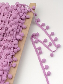 10723 товаровБрак(уценка) Тесьма "Помпоны" цв.сиренево-розовый аметист, шир.тесьмы без помпона-10мм; помпон Ø-11мм, п/э-100%
