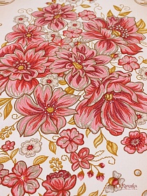 Полулен "Летнее раздолье-розовые цветы" (на суровом), ш.2.2м, лен-30%, хлопок-70%, 150гр/м.кв