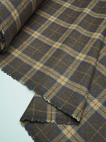 Шерсть пальтово-костюмная Твид "Клетка бежево-синяя на коричневом", ш.1.5м, шерсть-50%, п/э-50%