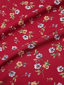 Штапель Премиум "Танец цветов на малиновом", ш.1.45м, вискоза-100%, 115гр/м.кв