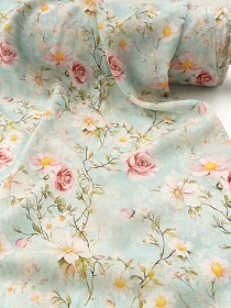 Ткань Дак "Луговые мечты" цв.мятный, ш.1.8м, хлопок-65%, п/э-35%, 200гр/м.кв