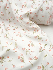 Штапель Премиум "Милые тюльпанчики" цв.белый, ш.1.45м, вискоза-100%, 120гр/м.кв